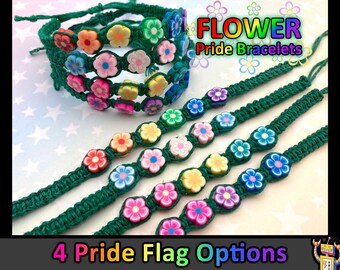 Glitter Mini Pony Beads Hemp Pride Flag Bracelet | Rainbow, Bi, Trans, Nonbinary, Lesbian Flags | 1 Bracelet | 7 to 8 Inches Adjustable